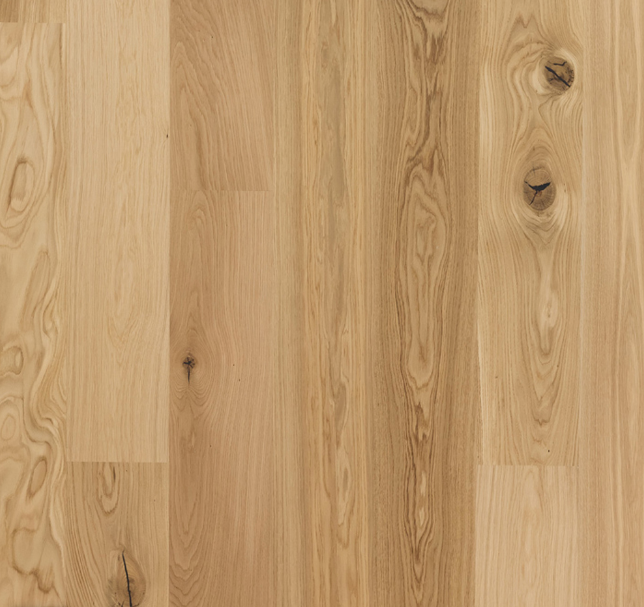Дуб имеет характерный древесный рисунок, насыщенный и выразительный. Он может совмещать в себе множество оттенков — от соломенно-желтого до темно-коричневого с черными вкраплениями. Потемнение со временем незначительное: поверхность приобретает янтарный оттенок. Подробнее о дубе.